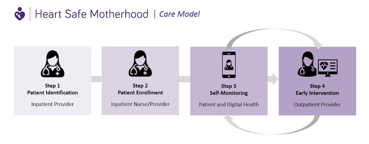 Heart Safe Motherhood is a novel approach to care delivery that leverages connected health technology and a new role for Obstetrical providers to transform the quality, safety, experience, and cost of care during women’s transition from hospital admission after delivery to home. The goal of Heart Safe Motherhood is to drive better maternal outcomes, improve the care experience, and reduce the total cost of care for women with pregnancy-related and chronic hypertension in the immediate postpartum period. Through text-based remote monitoring, Heart Safe motherhood reduces the burden of preeclampsia.